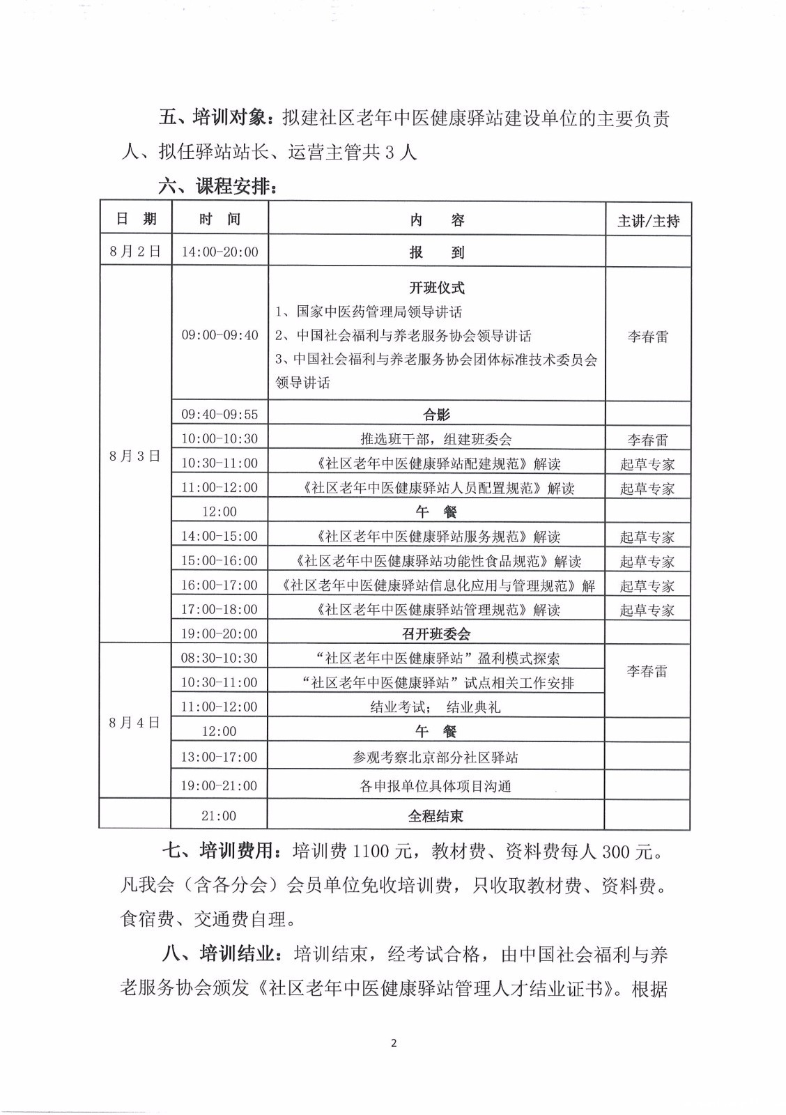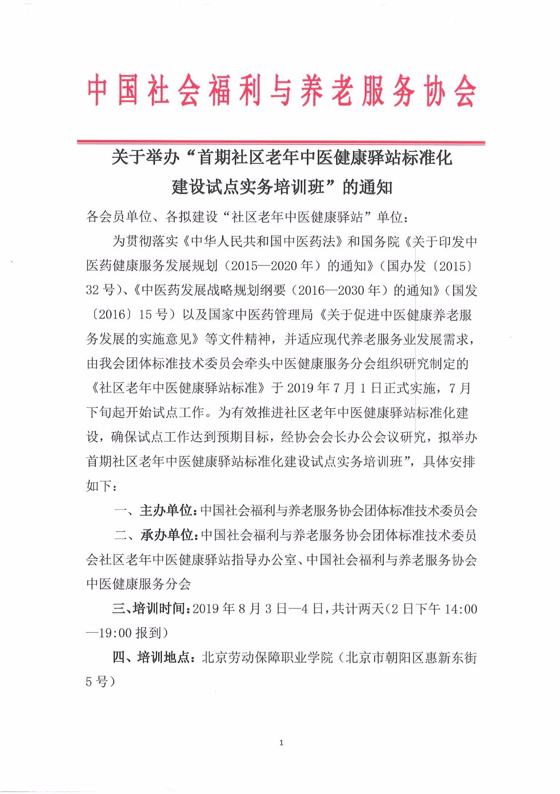 关于举办“首期社区老年中医健康驿站标准化建设试点实务培训班”的通知