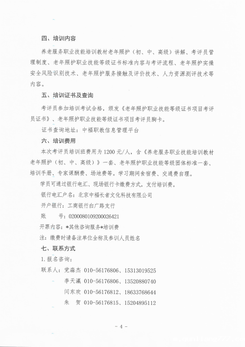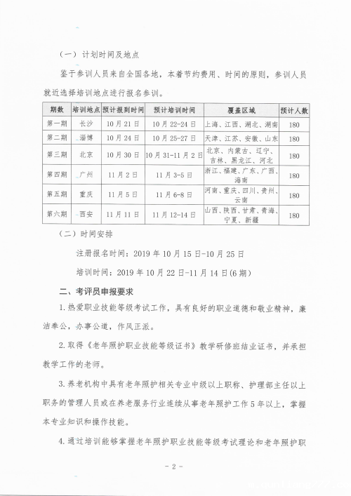 关于老年照护职业技能等级证书试点项目考评员培训的通知