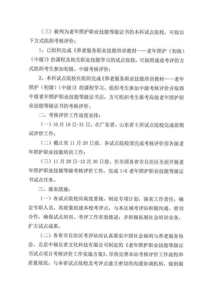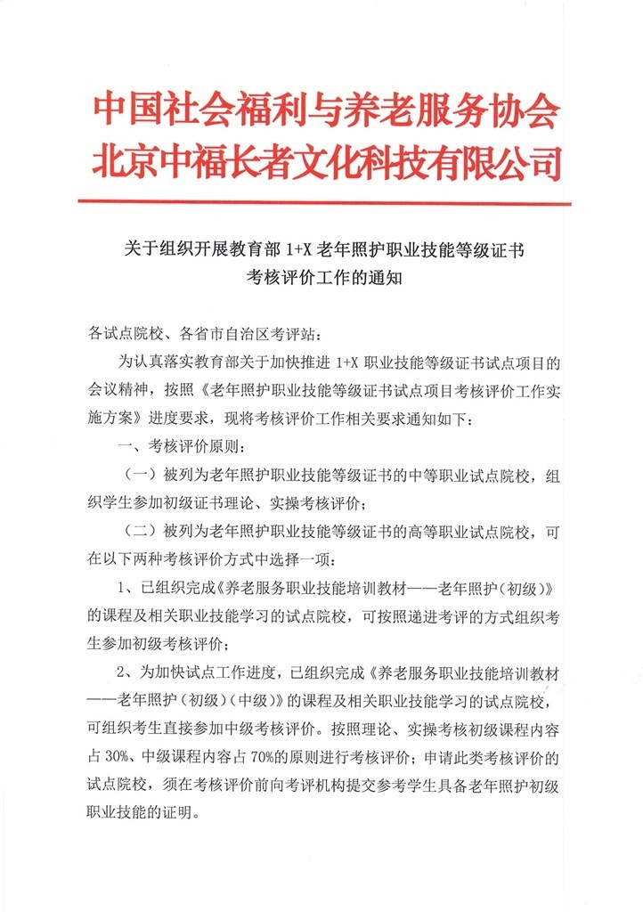 关于组织开展教育部1+X老年照护职业技能等级证书考核评价工作的通知