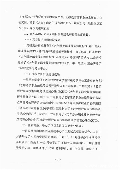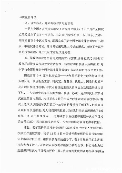 关于通报老年照护职业技能等级证书试点项目进展情况的函 【24】(各试点院校)
