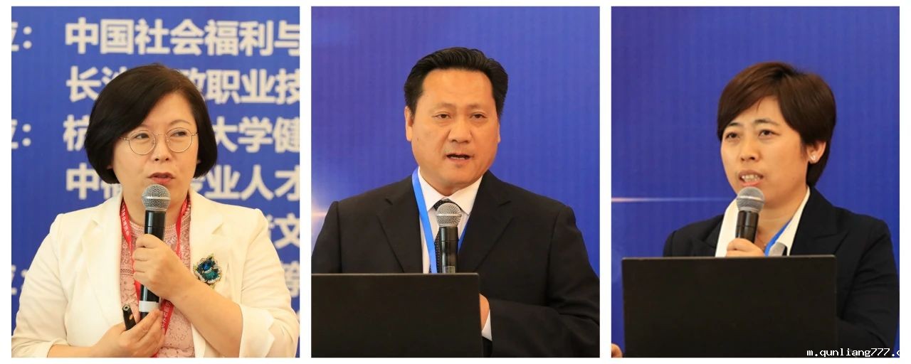 周微秘书长、徐岷利院长、刘杰副校长、左凤林院长做主题演讲浙江省老年服务业协会副会长兼秘书长周微以《发挥行业协会在技能人才能力提升方面的作用》为题做主题演讲,中福协专业人才队伍建设分会分会副会长、陕西省社会福利与养老服务协会副会长、西安养老康复中心院长徐岷利以《养老服务人才培养的路径和方法》为题做主题演讲,湖南中医药高等专科学校副校长刘杰以《“政-行-校-企”合作养老服务职业技能人才培养的探索》为题做主题演讲,重庆三峡医药高等专科学校护理学院院长左凤林以《养老专业“岗课赛证”综合育人的三峡医专实践》为题做主题演讲。