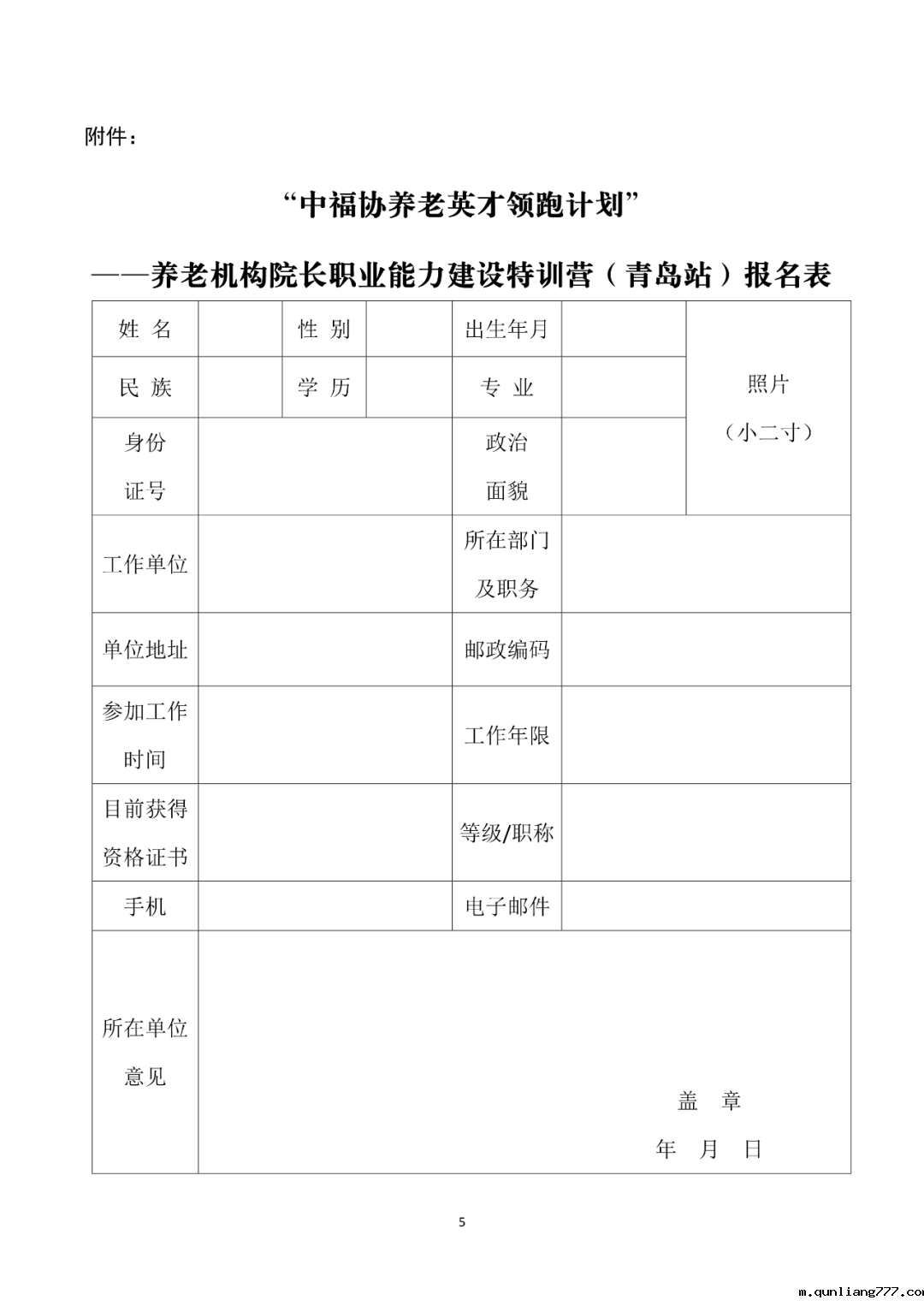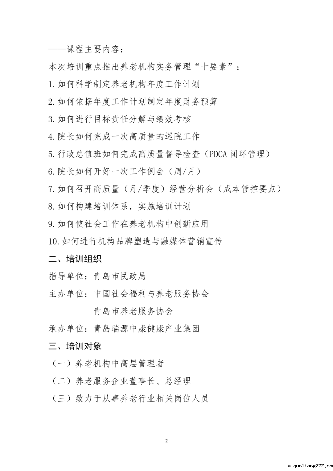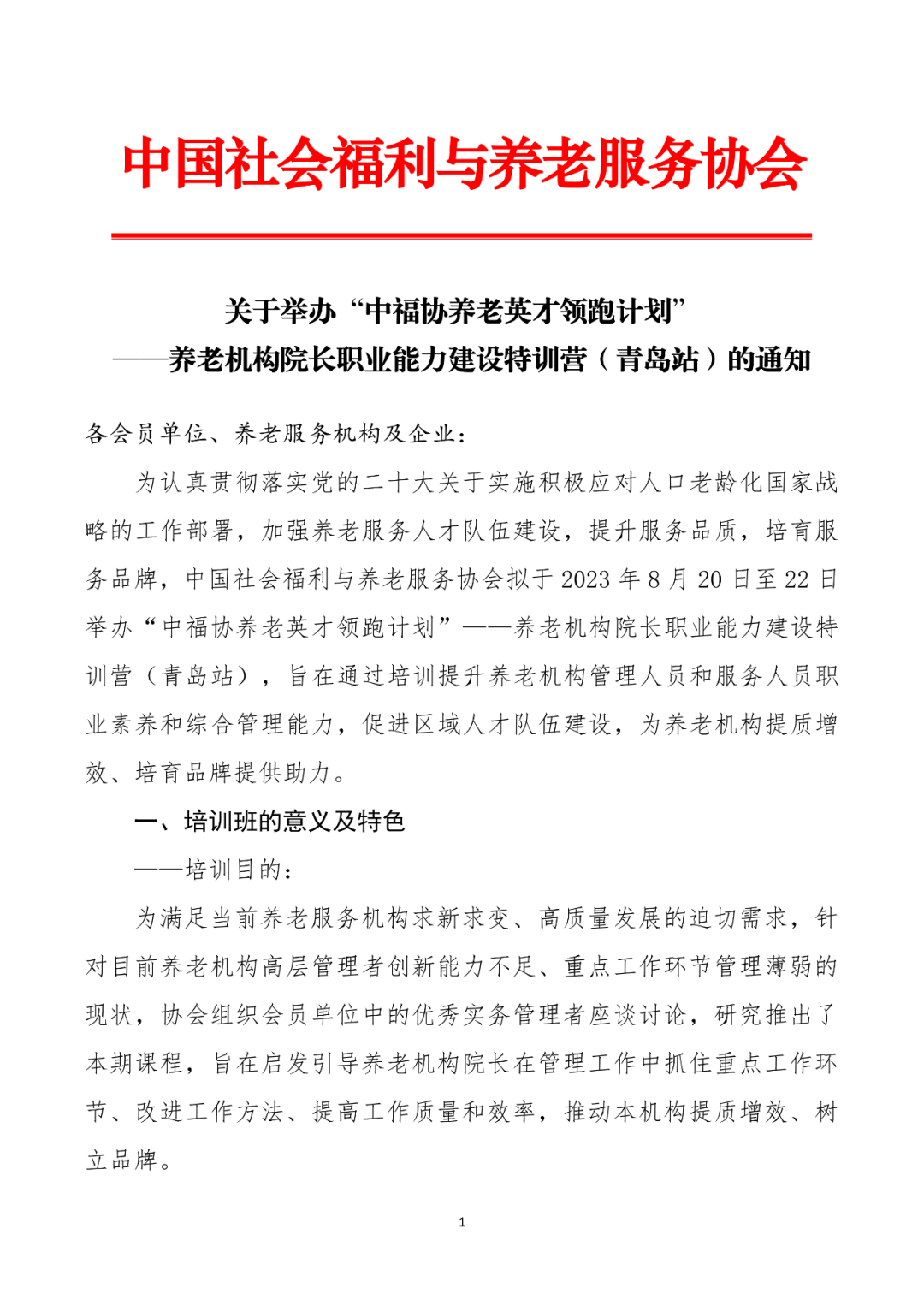 关于举办“中福协养老英才领跑计划”——养老机构院长职业能力建设特训营(青岛站)的通知