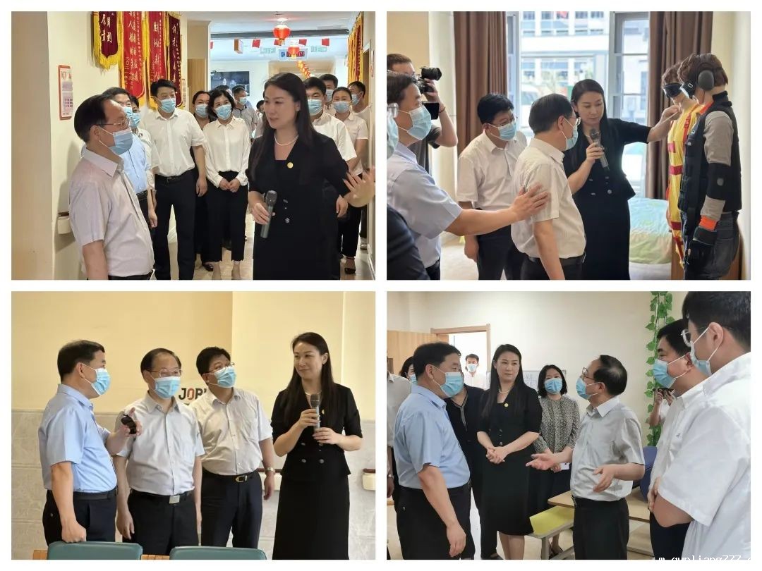 8月3日,江苏省主题教育第六巡回指导组、省民政厅开展养老服务工作专题调研。省人大法制委主任委员侯学元、省纪委监委纪检监察员孙连喜、省委组织部党员教育中心(远程教育中心)副主任潘金龙、省委党校决策咨询部三级调研员李文武、江苏海洋大学纪委纪检监察员戴雁琴、省委省级机关工委宣传部二级主任科员刘顺甜;省民政厅党组书记、厅长谢晓军、省民政厅一级巡视员戚锡生、省民政厅政策法规处处长钟萍、省民政厅养老服务处处长林莉;徐州市民政局党委书记、局长吴彬;新沂市委书记陈堂清,新沂市民政局党组书记、局长陆宝芹等省市领导莅临九如城钟吾康养中心,九如城淮海协同中心副总经理兼徐洛城市发展总经理王明丽进行工作汇报。